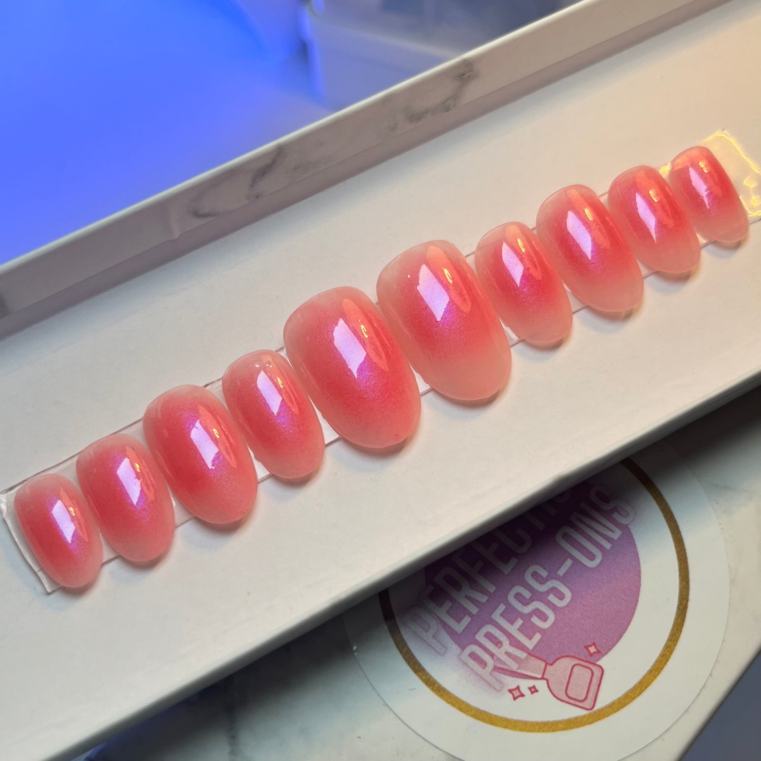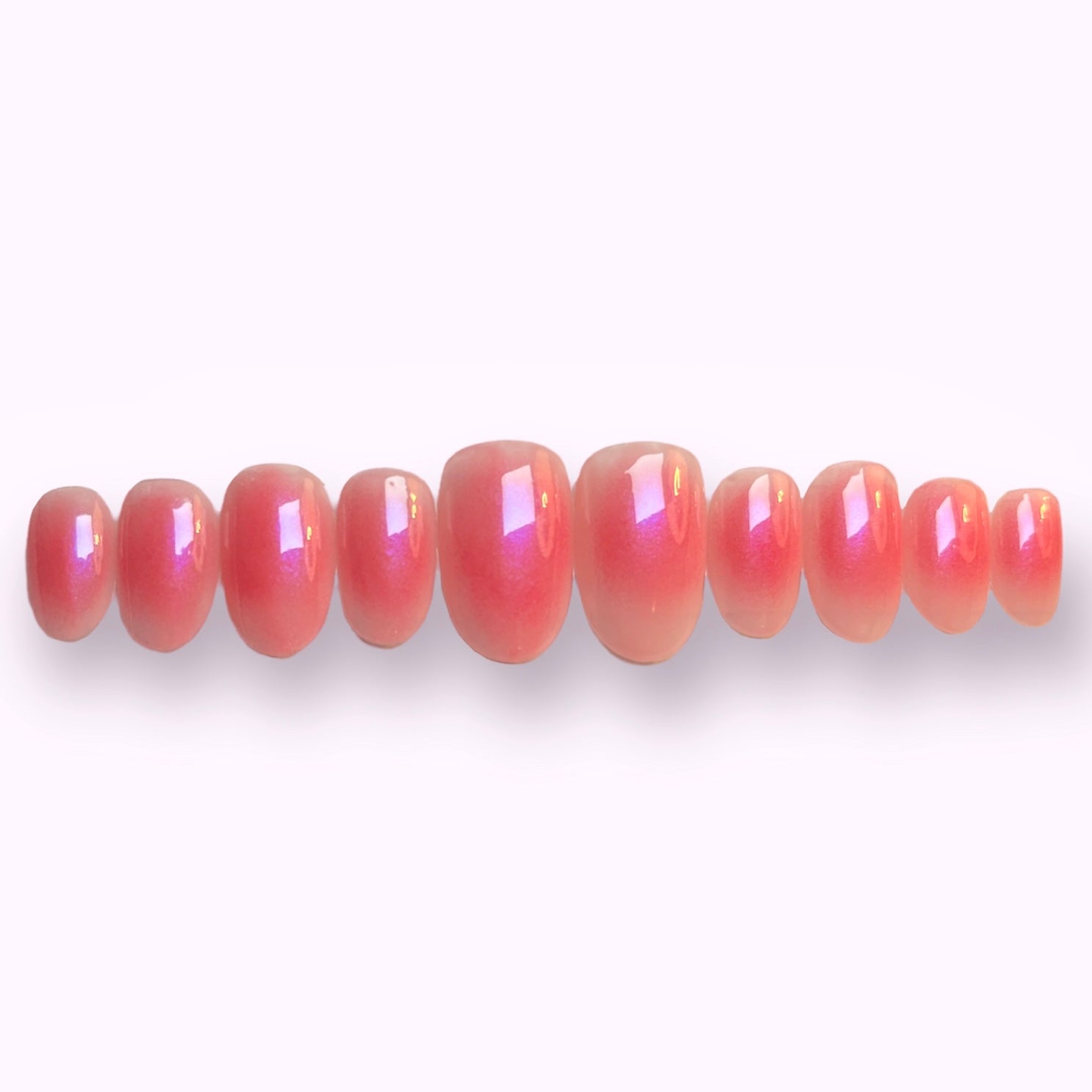 Jelly pink base with shimmery pink aura design.