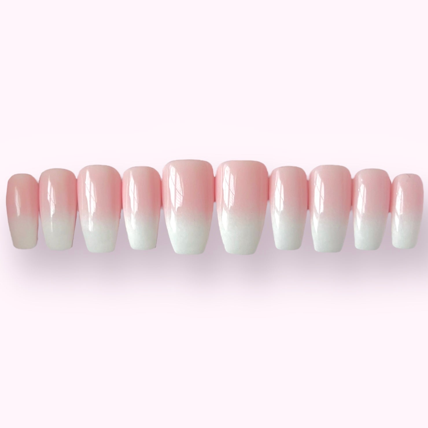 Pale pink base with an ombré white tip.