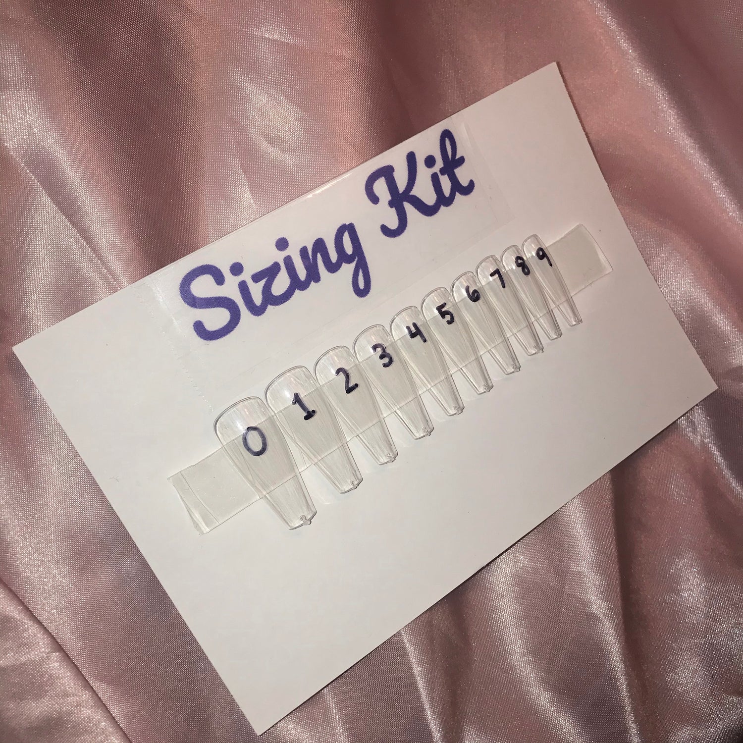 Sizing kit features all sizes of press-on nails for you to see your nail sizes.